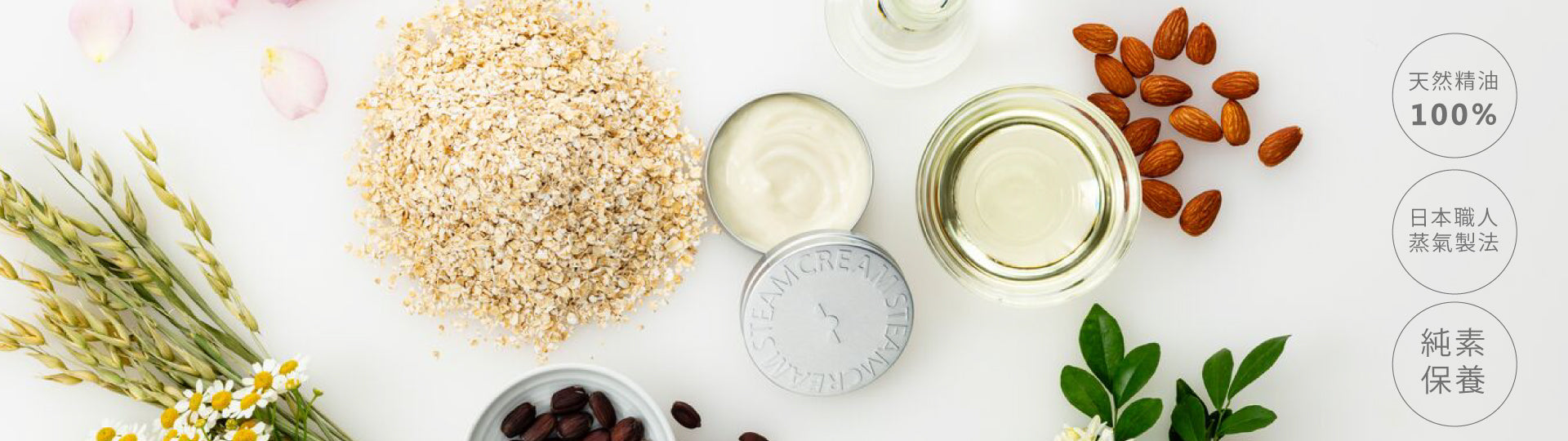 起源於英國,在日本發揚光大的蒸汽乳霜。日本職人堅持追求高品質的專業精神,製造出獨一無二的蒸汽乳霜。主要成分來自於燕麥及植物萃取,溫和潤澤肌膚。100%天然精油使用,散發療癒宜人清香。利用高溫蒸氣乳化原料的技術,將原料分子變小,乳霜質地變得細緻親膚,容易被肌膚吸收。產品上市至今,蒸汽乳霜始終採用高回收率的鋁罐包裝,為環保貢獻一已之力。此外,蒸汽乳霜亦不做任何動物實驗,尊重地球上每一個生命。