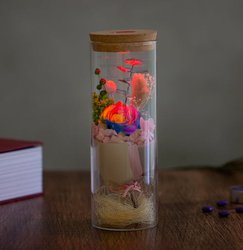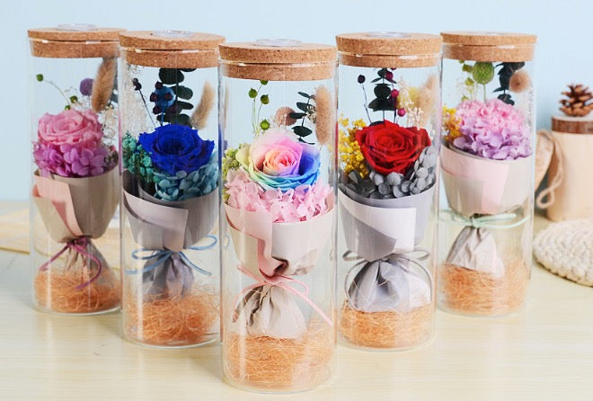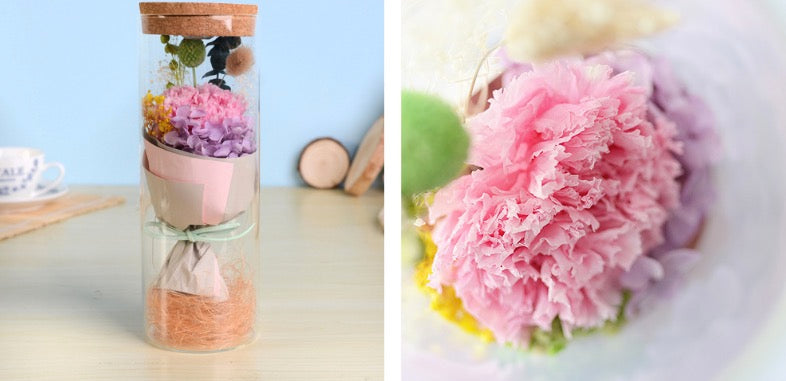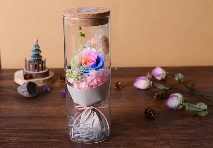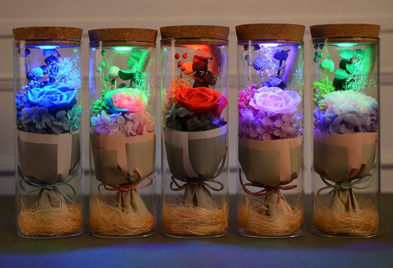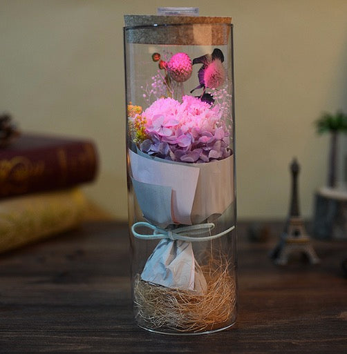 不凋花是經過特殊工藝處理的真花,為您保留真花的嬌柔與姿態,搭配多款花材與LED情境燈,擺在家裡有很有氣氛唷!送給心儀的對象也是很不錯的選擇!