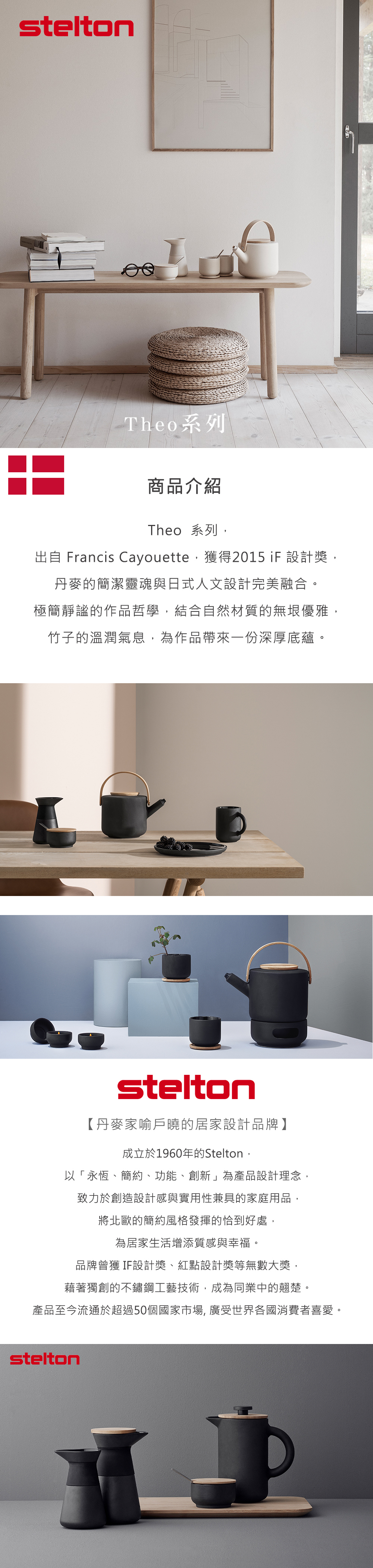 Stelton 成立於1960年,是丹麥最知名的居家設計品牌之一。致力於創造設計感 與實用性兼具的家庭用品,將北歐的簡約風格發揮到恰到好處,讓家庭用品能和諧的融入居家裝潢中。