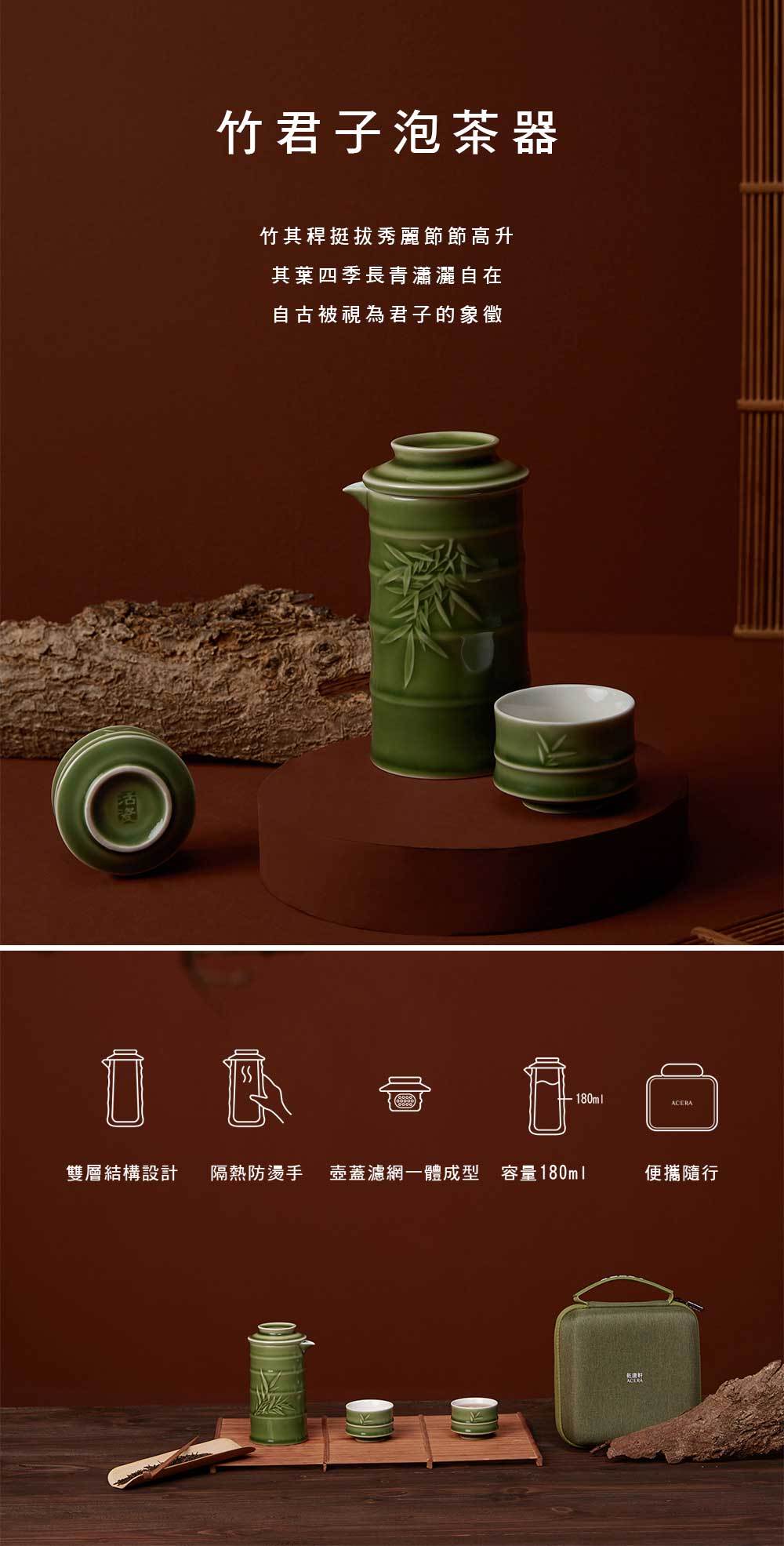 乾唐軒活瓷 竹君子泡茶器 / 一壺+二杯 / 3色