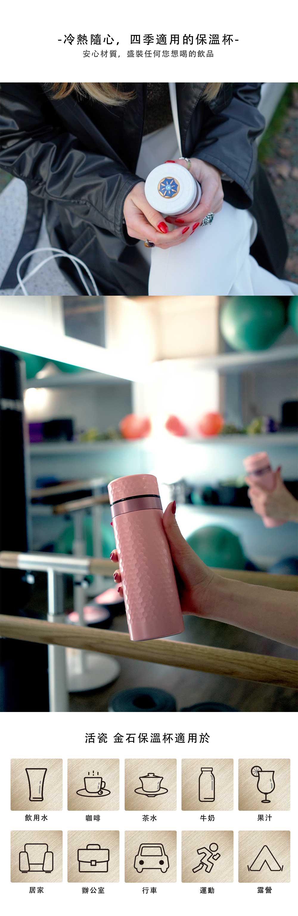 活瓷杯具遠紅外線和負離子功能 可更換內膽 不挑飲品,咖啡、茶類、中藥、果汁、果醋及牛奶等皆可裝 鉛、鎘檢測合格 不會釋放重金屬物質,喝得更安心 商品皆附精美紙盒、提袋 是您送禮首選