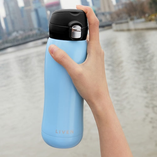 尺寸:約 7.2×7.2×22.5cm 容量:500ml±5% 材質:SUS304雙層不鏽鋼 上蓋:食品級PP上蓋、食品級矽膠墊圈 顏色:晴空藍 產地:台灣設計,中國製造