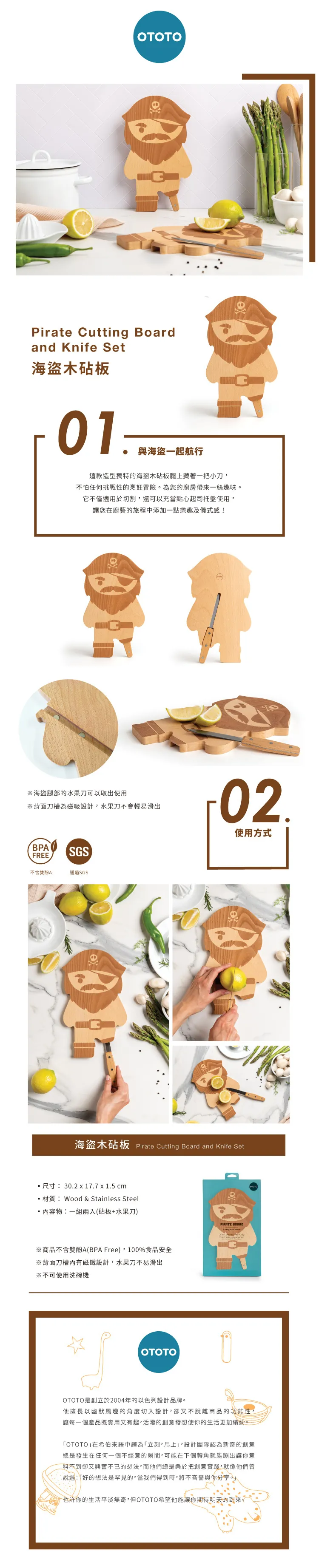 這款造型獨特的海盜木砧板腿上藏著一把小刀,不怕任何挑戰性的烹飪冒險。為您的廚房帶來一絲趣味。