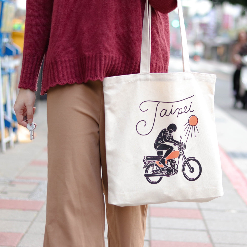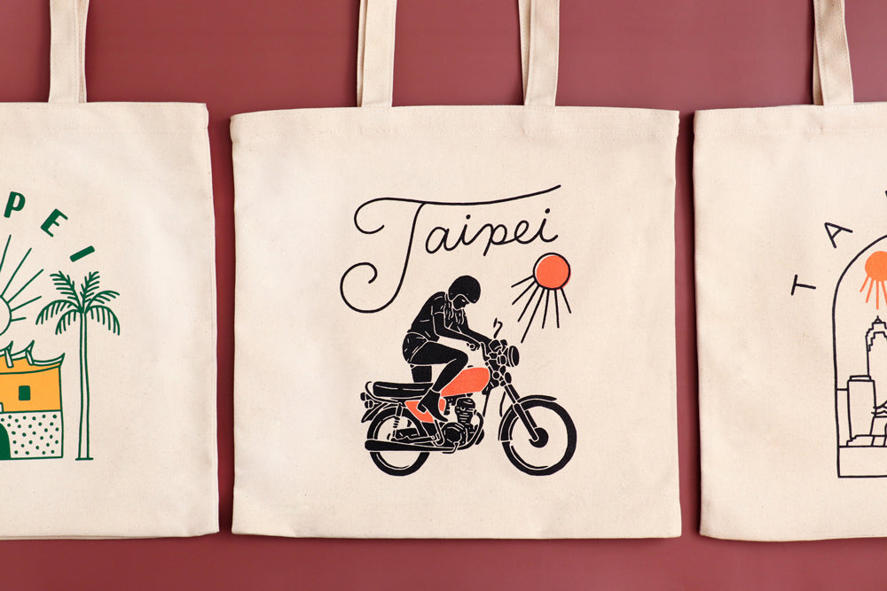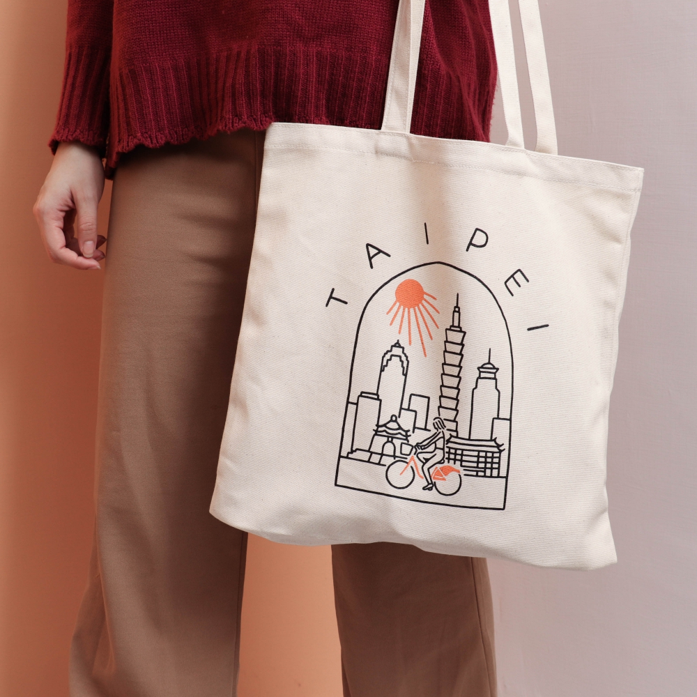 旅遊總有著買張明信片替自己留作紀念的氛圍,或者從遠方寄給朋友,傳遞旅遊當下的心情,挑款屬於自己特別的方式,記住每個城市樣貌吧! 我們將臺北迷人的日常風光加入帆布托特包上,將城市加入復古元素,其中有知名古蹟地標北門、101、中正紀念堂等建築,承載了數年的歷史與記憶,如今我們使用大眾環保交通U-BIKE、摩托車,自由穿梭在景點之間,讓你在靜態圖騰裡也能感受到生動對比。