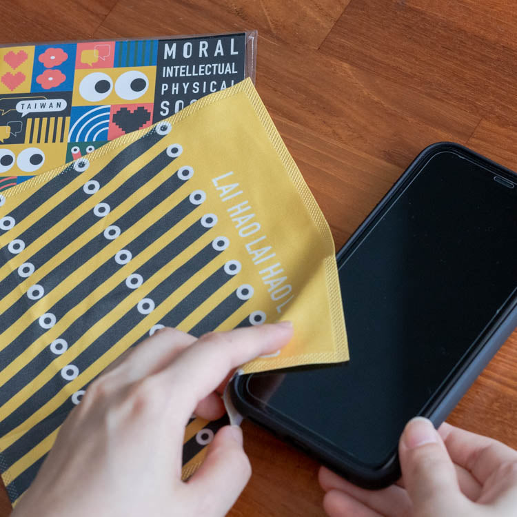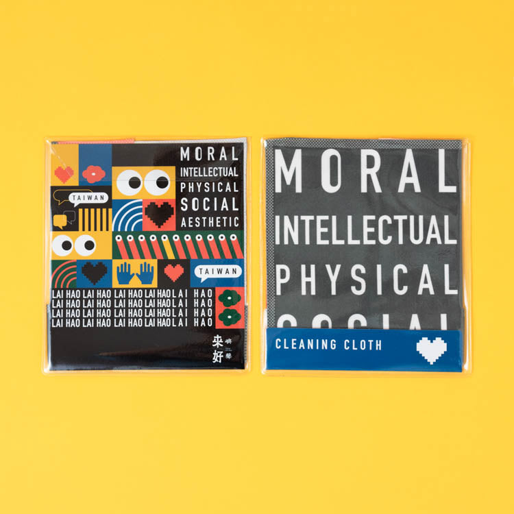 五育並進 擦拭布 -超細纖維面保護您的各種裝置 (極精密光學相機產品使用前仍需謹慎考慮) -可單獨使用不需再額外使用清潔劑 -快速去除各種灰塵、油漬、髒污。 -可重複水洗 -復古新潮五育圖案 Five Ways of Life 五育德智體群美 小時候的教育,以五育均衡發展為國民宗旨,在前進的路上,師長們運用各種小遊戲,活用課本上的學術知識,讓我們更能融會貫通;來好以此作為不斷闖關、挑戰的方式,讓視覺充滿張力、復古帶點鬧的手法呈現,大膽玩色,用不同面相詮釋從前尊崇的制度,跳色的層次感,一步步帶你前進模範生之路。 將道德為基礎,透過思考、實作、彼此互相扶持,達到內外在的美感兼具,從學習過程中不斷成長,落實德智體群美的全向發展。 我們將五育結合日常會使用的文具、生活用品:刺繡布章、帆布袋,無形之中提醒著自己,勇敢跳脫眼前狹隘的束縛! 擦拭布 擋灰塵、防撞、裝飾、保護,讓眼鏡手機都能受到呵護。