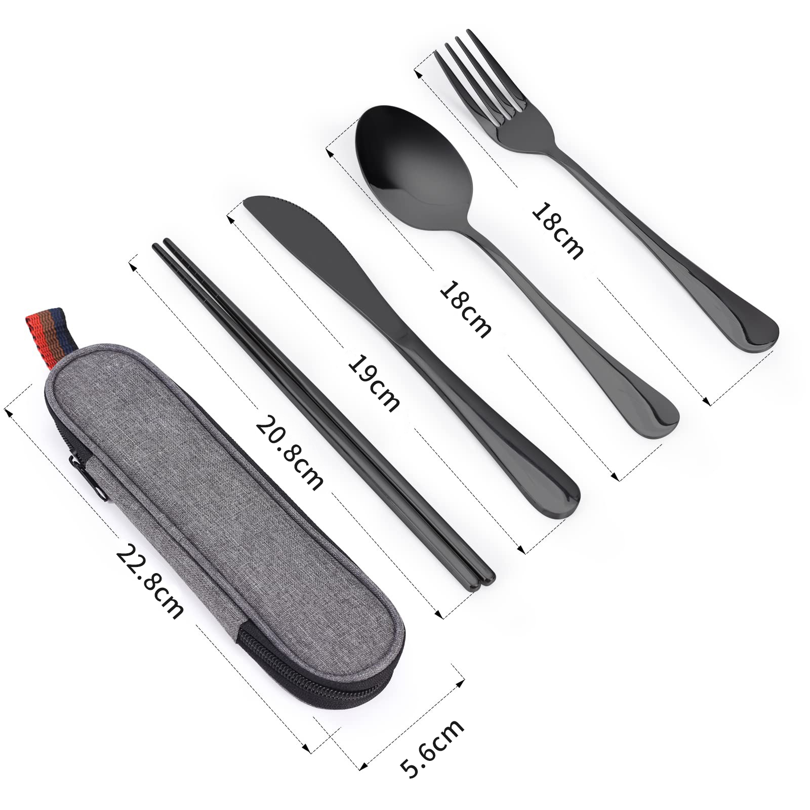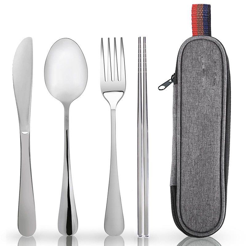 材質:304不鏽鋼 單套重量:175g 包裝內容:餐刀*1+餐叉*1+餐勺*1+筷子*1+袋子*1 產地:中國