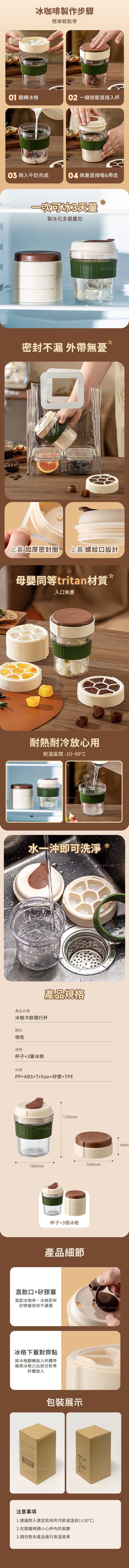 【讓你咖啡自由,自己泡得更好喝】 *一按脫冰,直接入杯 *換蓋秒變隨行杯 *一次可冰3天量 *密封不漏,外帶無憂 *耐熱耐冷放心用
