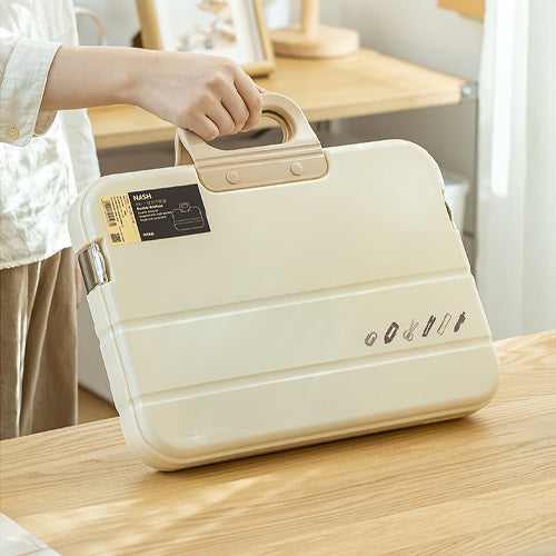 【大小書本皆可放,滿足日常所需】 *A4大容量,輕鬆收納 *雙鎖扣設計,牢固防掉 *帶提手設計,方便提拿 *防塵防潮,保護內存文件
