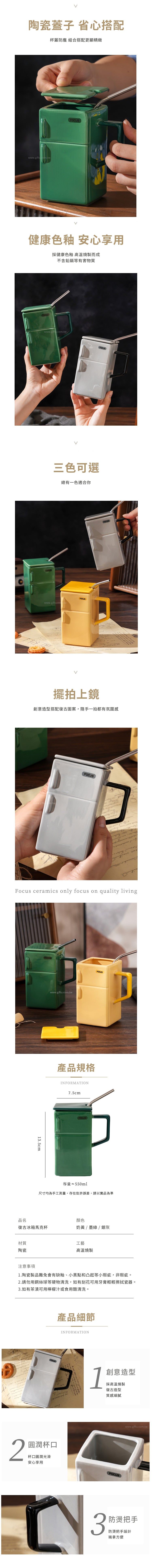 材質:陶瓷 容量:550ml 產品尺寸:7.5*13.5cm 產地:中國