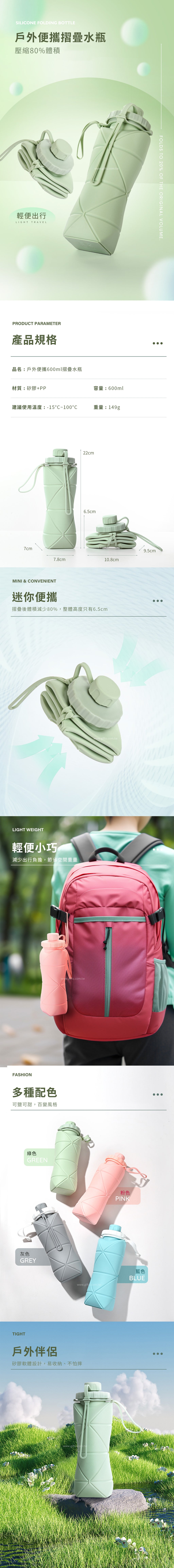 【輕便小巧,減少出行負擔】 *摺疊後體積減少80% *矽膠軟體設計,易收納不怕摔 *材質耐高溫,不含雙酚A