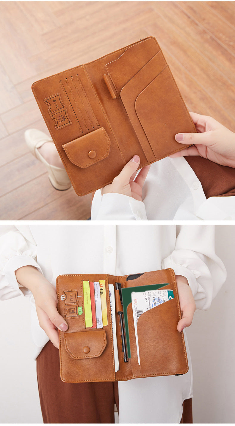 面料:PU皮 裏料:滌綸 重量:100g 尺寸:10.5*19.5*1.5cm 結構:鈔票位+隔層+夾層*2+卡位*4+筆扣+零錢袋+手機位+卡針位 產品保固:半年 產地:中國