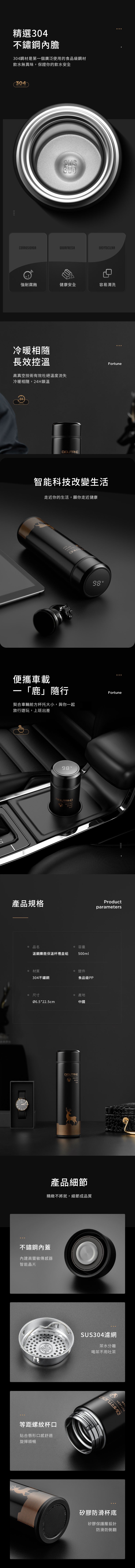 【引領格局,逐鹿前行】 *輕觸螢幕,溫度即顯 *無需充電,內建高性能電池 *精選304不鏽鋼內膽 *冷暖相隨,長效控溫 ⚠️附贈之保溫杯收納套款式隨機出貨,圖片款式僅供參考