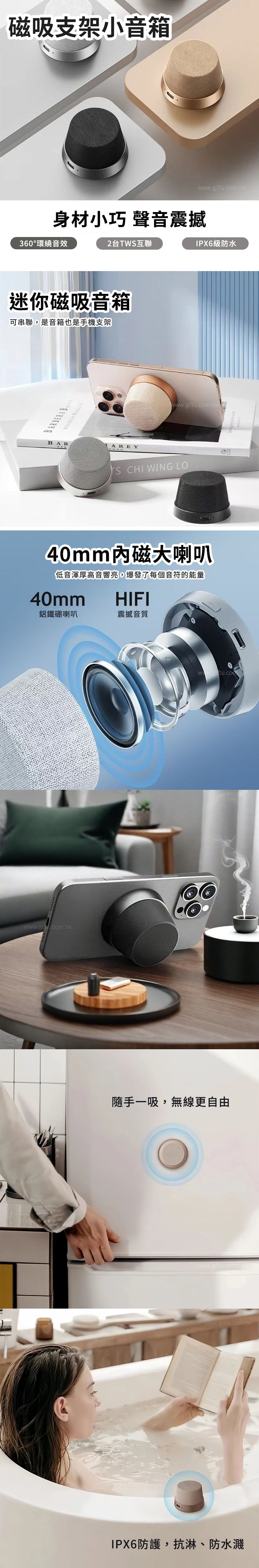 【身材小巧,聲音震撼】 *低音渾厚高音響亮,爆發了每個音符的能量 *IPX6防護,抗淋、防水濺 *隨手一吸,無線更自由 *360°環繞音效 *2台互聯,聚會娛樂更實用