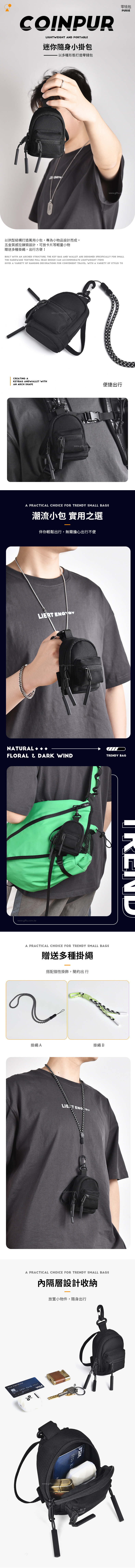 以拱型結構打造萬用小包,專為小物品設計而成。 五金質感拉鍊頭設計,可放各式輕量小物 贈送多種掛繩,出行方便!