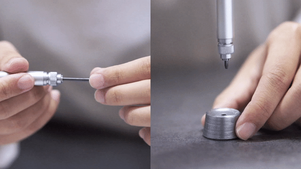 產地:筆、筆座-台灣/筆芯-德國 包裝尺寸:19.5*10.5*6.2 cm 筆桿長度:14.3 cm 筆身重量:18 g 材質:筆身 - 鋁、黃銅 / 底座 - 鋅合金 內容物:手工精裝硬盒、自立筆、鋅合金底座、額外德國 Schmidt 筆芯、取芯器/磨芯器、使用說明書