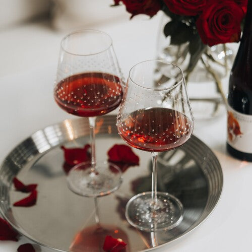 我們的系列由精美的無鉛水晶玻璃製成,由於採用杯腳一體成形製造,因此非常耐用,每個酒杯都裝飾有 364 顆最高品質的閃亮水鑽。