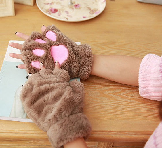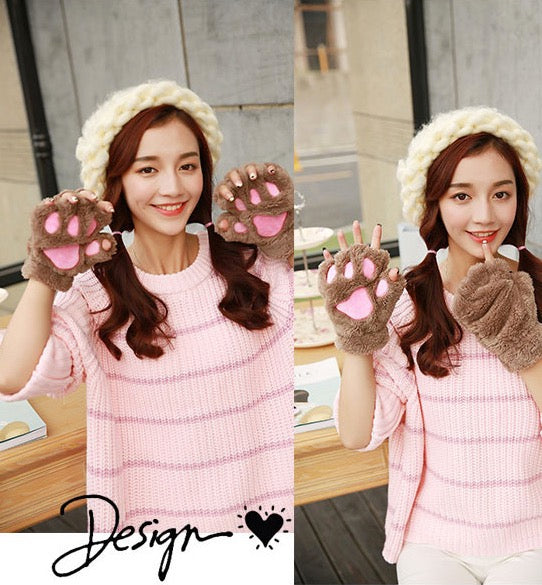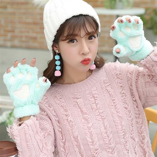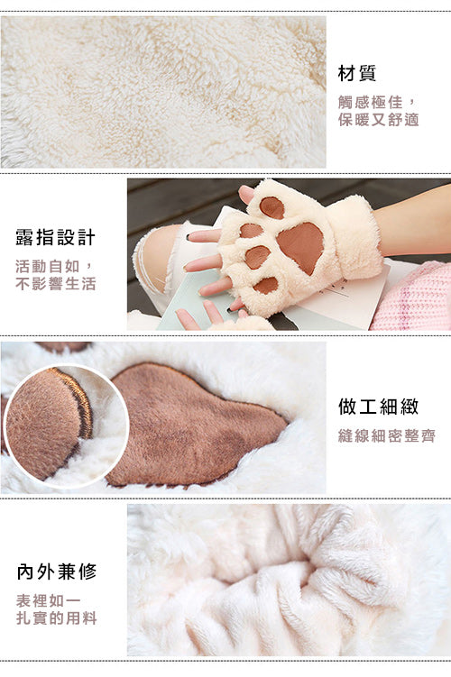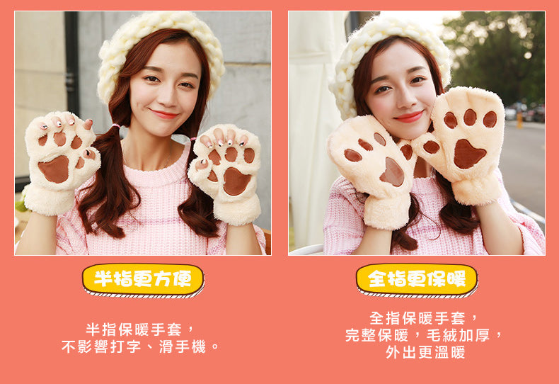 女孩家居小物館 可愛萌萌貓咪肉球手套 半指