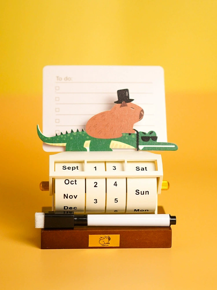 以可愛的卡皮巴拉為主題的萬年曆,放置於辦公桌、書桌或家中任何角落,隨時查看日期的同時,享受卡皮巴拉帶來的溫暖與愉悅。 ●可愛設計: 以卡皮巴拉為主題,造型生動,為您的桌面增添趣味。 ●旋轉功能: 萬年曆設計,日期可自由調整,方便實用。 ●高品質材質: 選用優質材料,耐用且環保。 ●多功能性: 不僅是萬年曆,還可作為桌面擺飾,增添生活情趣。
