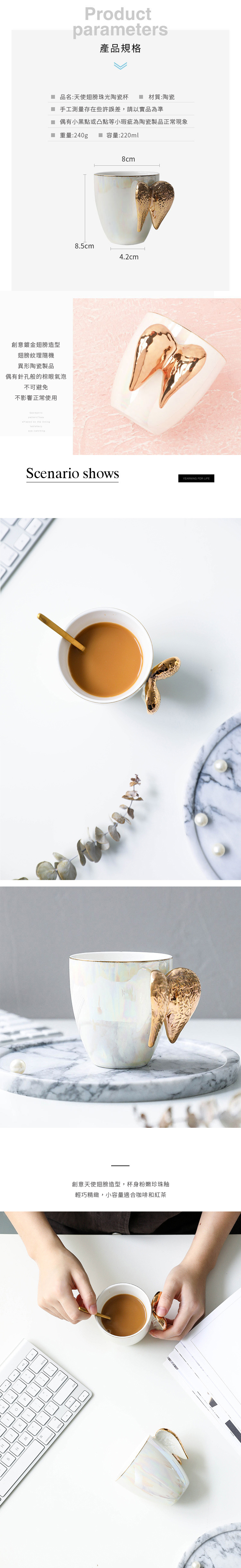 家居生活雜貨舖 天使翅膀珠光陶瓷杯