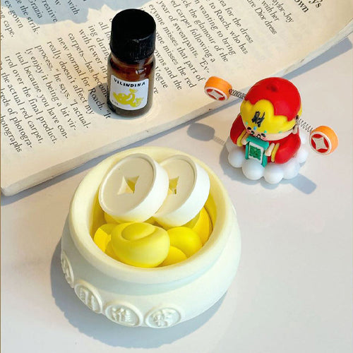 材質:石膏 重量:390g 精油香型:梔子花 產品尺寸:元寶3cm|銅錢3cm|聚寶盆7.8cm|財神爺5*7.8cm 包裝尺寸:16*16*6cm 儲存方式:置於常溫陰涼處 產地:中國 包裝內容:財神爺*1+精油*1+銅錢香石*2+元寶香石*5