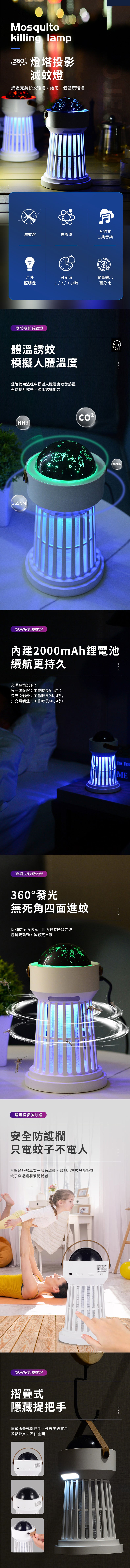 【締造完美滅蚊環境,只電蚊子不電人】 *模擬人體溫度,強化誘捕能力 *360°發光無死角四面進蚊 *摺疊式隱藏提把,懸掛不占空間 *晚上或黑暗室內可投影使用