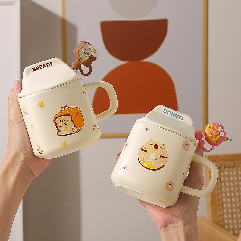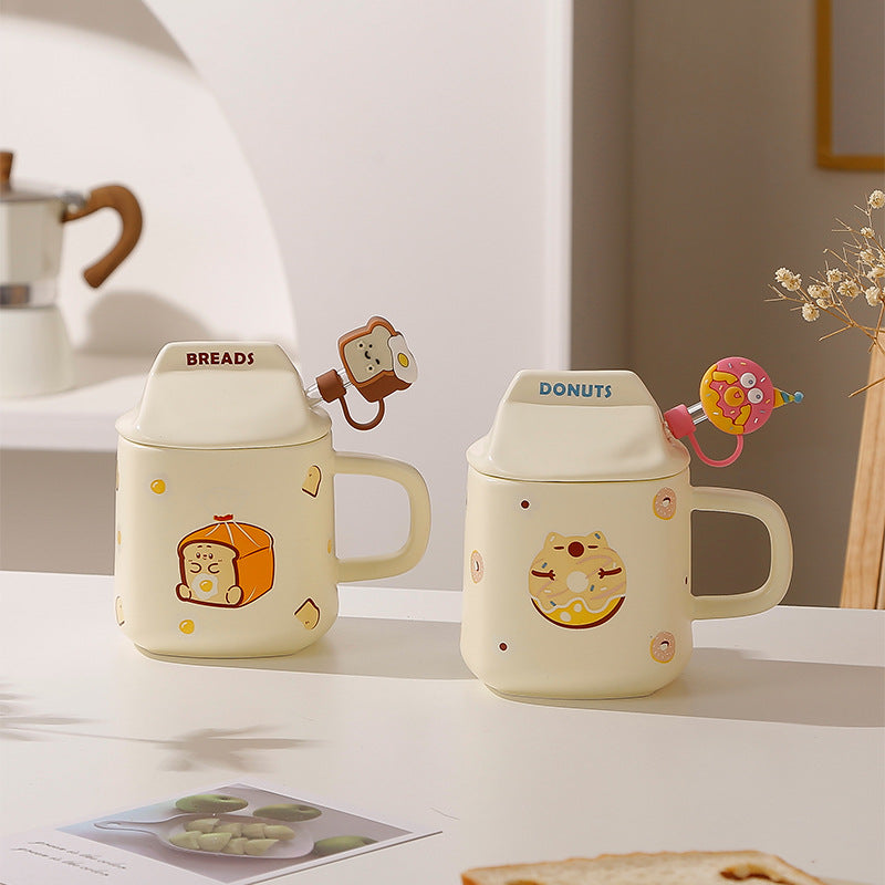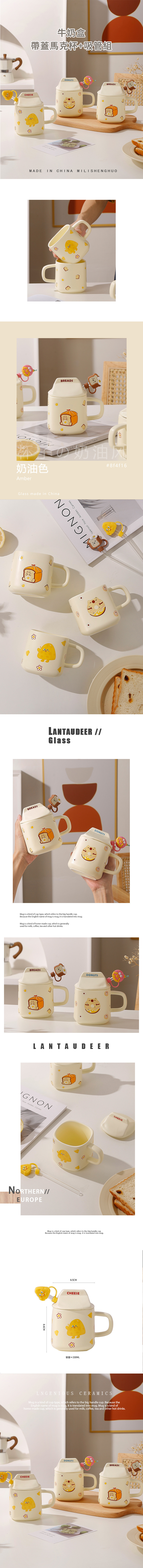 【可愛的奶油風馬克杯,陪你度過風和日麗的每一天】 *瓷質細膩,釉面光滑 *玻璃吸管帶矽膠塞,乾淨衛生 *寬大杯柄,拿握舒適兼防燙