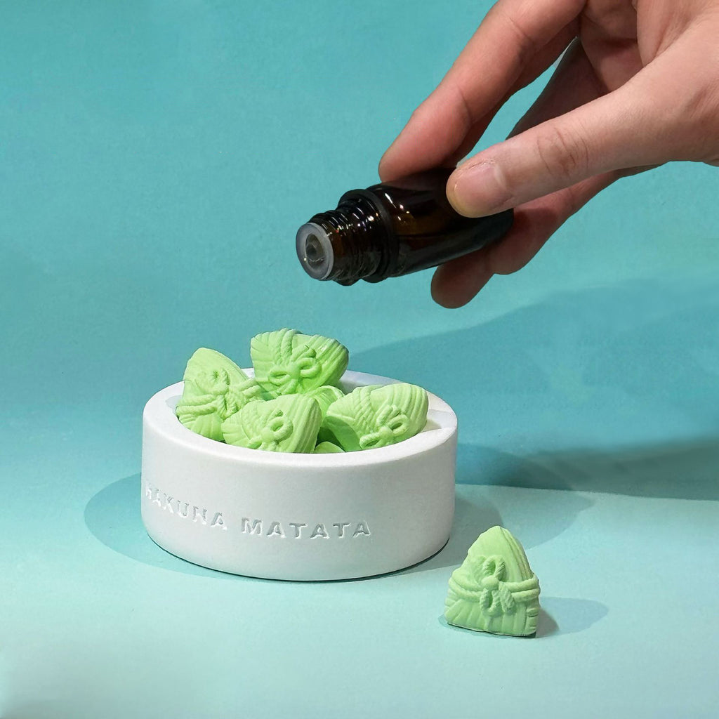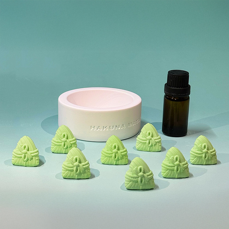 材質:石膏 粽子尺寸:23*23*23mm 容器尺寸:80*80*35mm 包裝內容:精油10ml*1 + 石膏容器*1 + 粽子擴香石*8 產地:中國 -大吉嶺茶- 前調:綠茶、睡蓮 中調:胡椒木、癒創木 後調:龍涎香、琥珀