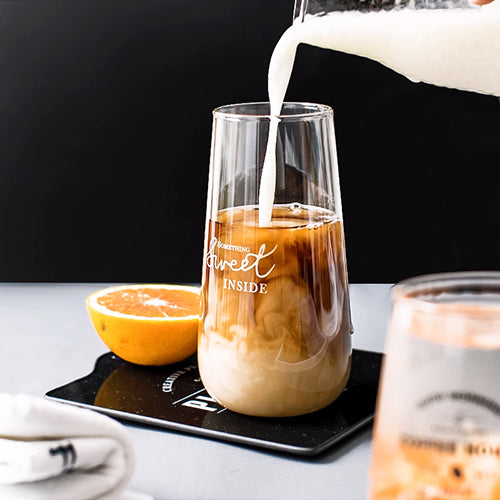 簡潔的線條和時尚的文字印刷,不僅提升了生活質感,也讓每一口飲品都充滿品味。耐熱玻璃材質,讓你無論是熱飲還是冷飲,都能輕鬆享受。