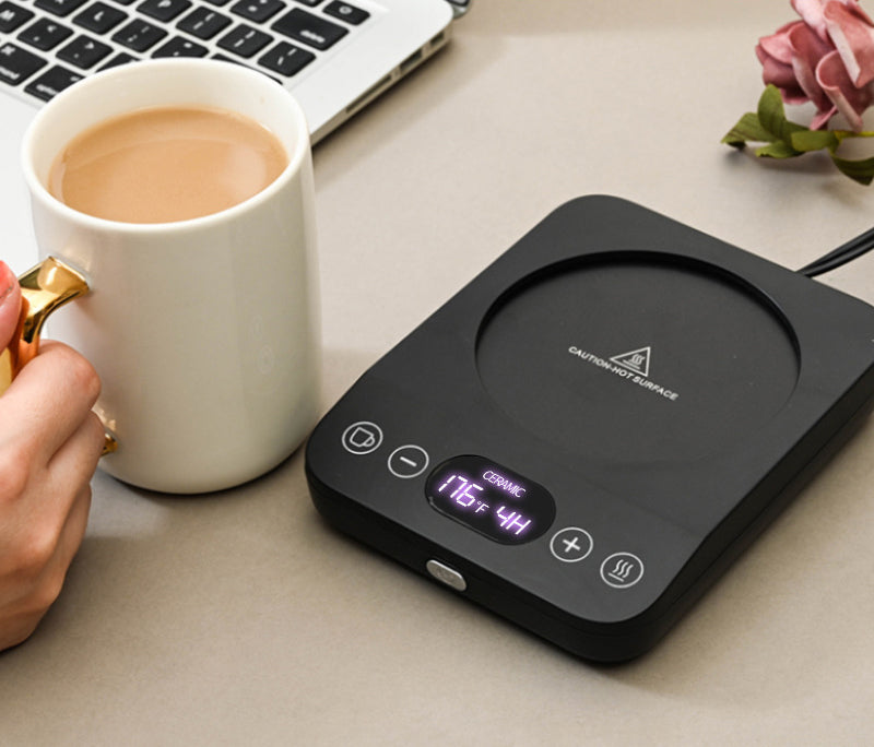 【將悠閒與舒適泡成一杯熱飲,溫暖整個午後時光】 *低中高溫,三檔溫度調節 *微晶玻璃面板,防水設計導熱快 *大直徑加熱區,適用於各種杯子 *定時關機,安全性能好 *觸摸式操作,溫度顯示