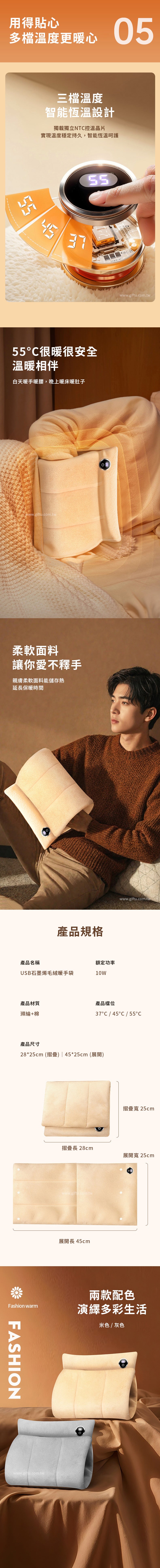 【暖心好物,讓愛一秒升溫】 *石墨烯+碳纖維急速發熱 *360°全方位發熱 *可調控溫度設計,暖心相伴 *親膚柔軟面料儲存熱,延長保暖時間 ✅請使用2A的充電插頭供電