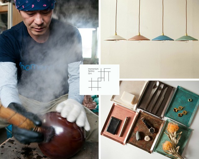 來自日本富山縣,每一件都是由職人手工製作,Orii的色澤並非塗裝上色,而是刻意利用銅、黃銅的腐蝕性,以傳統方式使其腐蝕而帶出素材質地的上色技術。不斷地融合、重覆煮・燒烤・浸泡的傳統技法,展現出銅金屬更深度的美。請感受這世上獨一無二的色澤及圖樣。