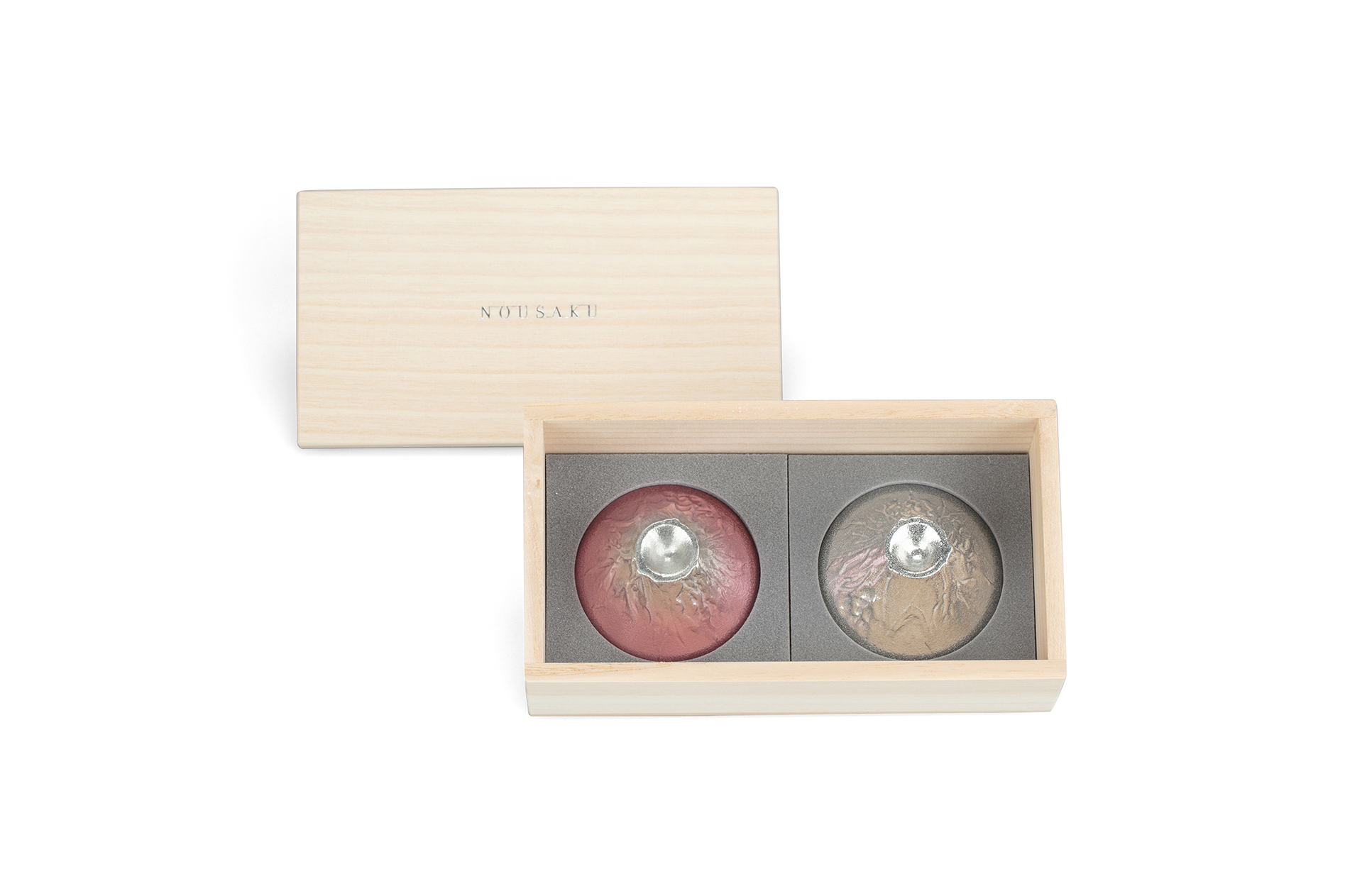 富士山風情杯是以世界文化遺產、日本第一高峰之「富士山」為造型設計。櫻色富士山風情杯在杯身施以櫻花色漸層,山頂則保留錫的原貌,表現出富士山頂白雪皚皚的景象。 而內側貼有金箔的富士山清酒杯,選用日本市占率99%的金澤金箔,每一個富士山風情杯都是能作職人手工製造,服貼契合掌心,令人感受手作溫暖。杯底的富士山造型,讓您飲酒時還能欣賞富士山的雄壯之美。 自古以來純錫有「放入錫器的水不易腐壞」,或是「純錫去除酒的雜味,讓酒變得更好喝」等說法,因此純錫常用來製作清酒器或茶具。富士山的吉祥寓意以及採用木盒收藏包裝的對杯禮盒,適合作為喬遷禮物、新婚賀禮、結婚週年紀念、商務贈禮,為您的心意錦上添花。