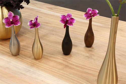 黃銅小花瓶自古以來即是茶會中常被使用的花器之一。在需要高難度的製作工序上,能作的職人們一件一件使用手工轆轤加工製作,引領出雋永的金屬質感。 簡潔流暢的造型,迷你的尺寸,隨時隨地輕鬆襯托日式或洋式的居家空間。 表面是黃銅鍍鎳處理;共備有黑棕、金棕、銀色3色可供選擇。 注意事項 使用後請將瓶內水分倒乾;瓶身外請用柔軟的布擦拭。 有上色的商品請勿使用堅硬的鬃刷或鋼刷刷洗,容易造成傷痕。 如果髒汙過於明顯,請使用濕布或海綿沾廚房清潔劑擦拭,再使用乾布將多餘清潔劑擦除即可。 為避免變色,請勿使用市售切花保鮮劑。 產地/製造方式 日本/手工鑄造