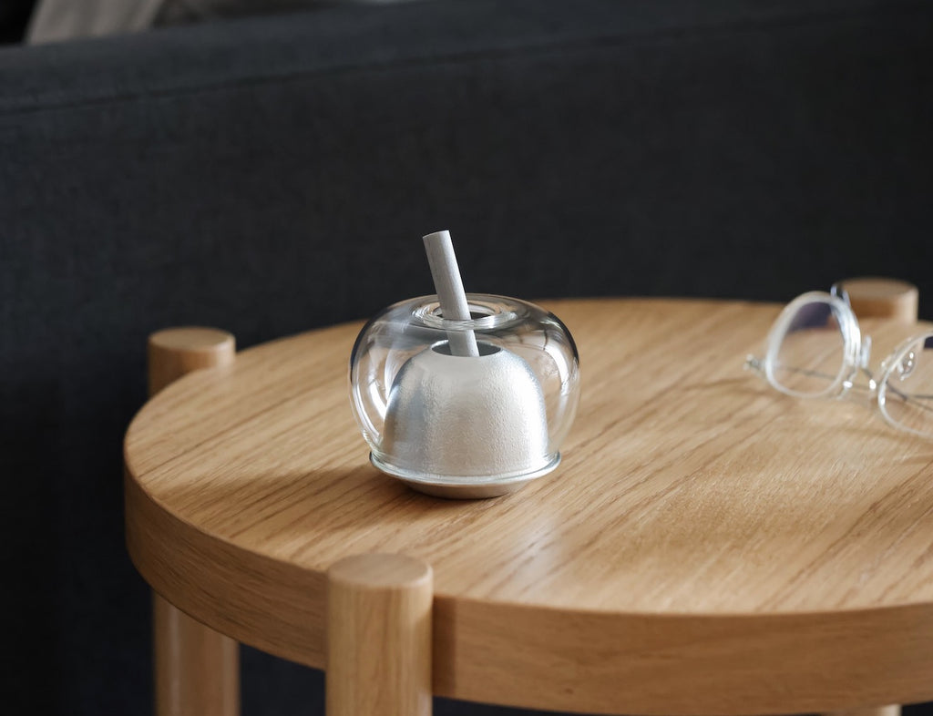 商品尺寸:玻璃+錫底座 W89 H70 mm 材質:100%純錫、玻璃、纖維棒 設計師:無氏製作