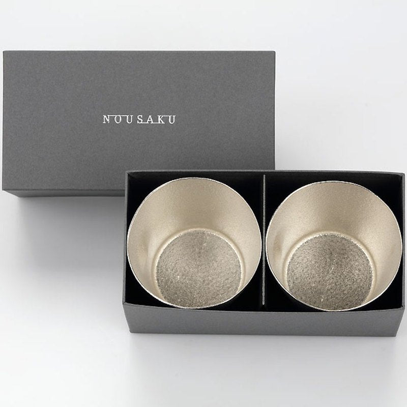 巧妙運用100%純錫的柔軟性,在杯身上刻意留下拇指按壓後的凹陷設計,使杯子更好掌握,營造使用愈久愈順手的樂趣。容量約350㏄。 錫的離子效果高,據說能淨化水質,使飲料變得更順口。將錫杯放入冰箱冷藏約1-2分鐘後,就能享受暢飲冰涼燒酒或啤酒的樂趣。也可以拿來喝牛奶、冰咖啡或各種無酒精飲品,甚至當作蕎麥麵醬汁或冷湯使用的器皿,具有多種用途,對杯組合更是贈送親友的最佳禮物。 注意事項 錫導熱快,建議冷飲避免燙傷。 請勿使用於酸性飲料以避免產生腐蝕。 使用後請用軟布或海綿搭配廚房用中性清潔劑洗淨。 為避免在表面留下刮痕,請勿使用鬃刷或含有顆粒的清潔劑。 光澤感消失時擦拭市售的金屬亮光劑或齒粉、小蘇打等物品就能恢復光澤。 低熔點,請勿放置於火源附近。 請勿使用於微波爐。 請勿放入冷凍庫,以免錫杯變色或變形。 請勿使用於洗碗機或烘碗機。 產地/製造方式 日本/手工鑄造