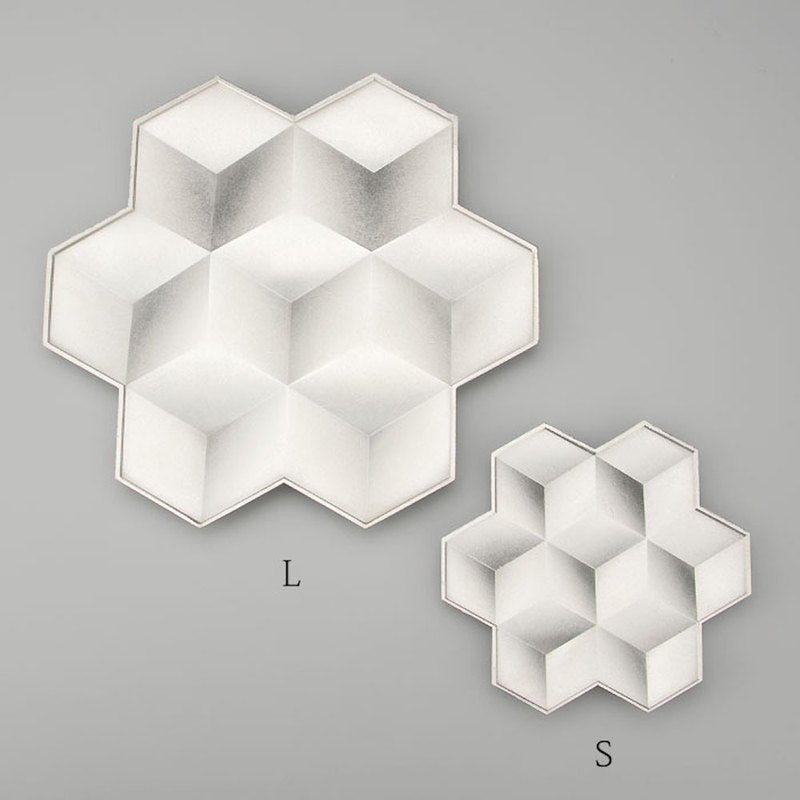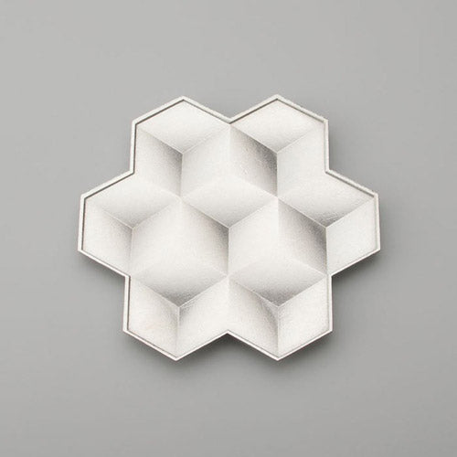 以幾何方式仿造雪花結晶,不同的角度會產生不同面貌的立體形狀,有趣的100%純錫製餐盤。 以富山縣綜合設計中心與台灣創意設計中心之合作專案為緣由, 由台灣「Gridesign Studio 格子設計」的林靖格總監所設計,以能作之技術完成的作品。 將各式各樣餐的餐點少量乘載於上,作為小菜或甜點盤,既時尚又能夠增添宴席的華麗。 因錫的導熱效果相當好,把餐盤放置在冰箱的冷藏室內1至2分鐘即可保持餐點的低溫。 也十分推薦作為盛裝飾品或鑰匙的家居擺飾。 注意事項 錫導熱快,使用時請注意避免燙傷。 請勿使用於酸性飲料以避免產生腐蝕。 使用後請用軟布或海綿搭配廚房用中性清潔劑洗淨。 為避免在表面留下刮痕,請勿使用鬃刷或含有顆粒的清潔劑。 光澤感消失時擦拭市售的金屬亮光劑或齒粉、小蘇打等物品就能恢復光澤。 低熔點,請勿放置於火源附近。 請勿使用於微波爐。 請勿放入冷凍庫,以免錫杯變色或變形。 請勿使用於洗碗機或烘碗機。