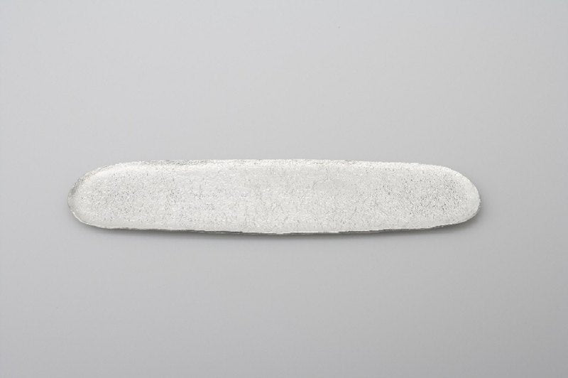 在富山縣高岡市傳統「鑄物」產業所培育出的鑄造技術為基礎,使用純錫製成。 利用純錫的高效熱傳導率,將純錫長盤置於冷藏冰鎮1-2分鐘即可保持料理的新鮮度。 適合家庭聚會盛裝前菜、沙拉、意式生牛肉片、壽司等冷盤料理或是甜點的多功用長盤。 表面纖細的紋路更襯托食材的華麗感;長盤兩端亦可稍加施力彎曲,握起來更順手。 注意事項 錫導熱快,建議冷飲避免燙傷。 請勿使用於酸性飲料以避免產生腐蝕。 使用後請用軟布或海綿搭配廚房用中性清潔劑洗淨。 為避免在表面留下刮痕,請勿使用鬃刷或含有顆粒的清潔劑。 光澤感消失時擦拭市售的金屬亮光劑或齒粉、小蘇打等物品就能恢復光澤。 低熔點,請勿放置於火源附近。 請勿使用於微波爐。 請勿放入冷凍庫,以免錫杯變色或變形。 請勿使用於洗碗機或烘碗機。
