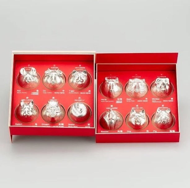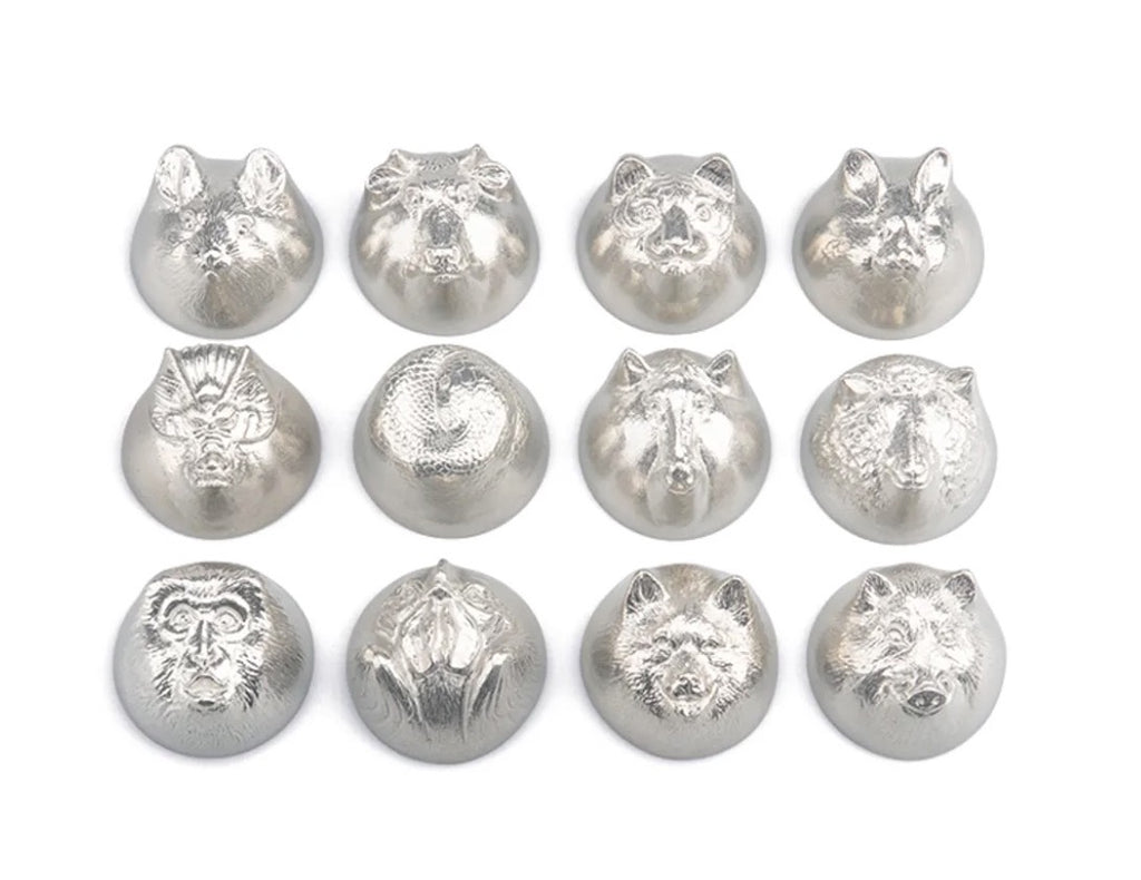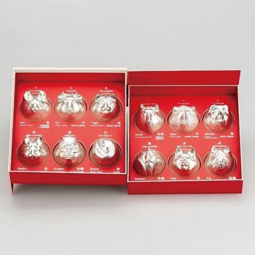 能作自2010年起,每年都會陸續推出當年的生肖造型酒杯。 經過了十二年,終於完成整個系列。 也因此特別推出直營店限定的十二生肖杯組, 並附有特別設計的收藏禮盒。 錫的離子效果高,能去除酒的澀味讓酒變得更順口。金箔杯則結合了金澤市的傳統工藝,在酒杯内側貼上了金箔,集聚了錫金屬優美溫潤的質感與金箔的奢華感。