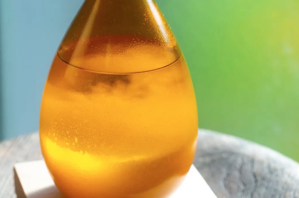 密封玻璃中充填入特製透明溶液(乙醇和樟腦等物質),根據外界溫度變化而結晶的原理來觀察天氣的改變,當溫度愈低時,結晶就會愈多。隨著季節氣候,裡面的液體可以從透明變成渾濁,或變成水晶雪花,溫差大的日子裡最能感受其樂趣所在。