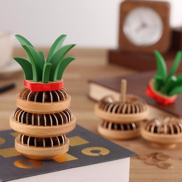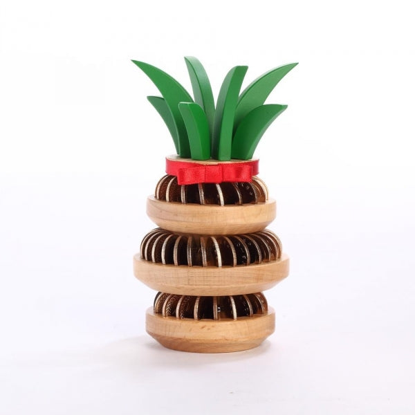 旺來取自於鳳梨的台語發音,譽有興旺、平安之意。 在中國習俗中鳳梨象徵興旺,不論是放在家中或辦公桌上都是一個風水好物。 作品取自於鳳梨的外型,錢座裡可放入66塊錢,象徵六六大順,生意興旺。 讓您可以一整年財運亨通、好運旺旺來! *備註: 可放置66個新台幣一元,因商品高度限制不能放置其他面額之硬幣(可能會影響螺絲高度與鬆緊),該商品不含零錢(66個一元),請買家自行準備。