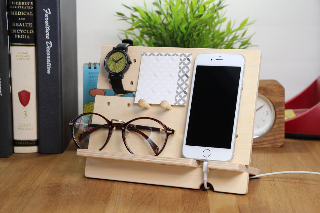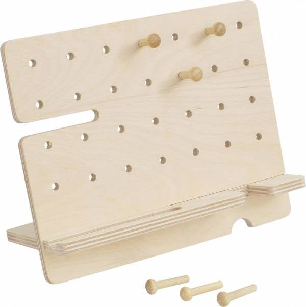 收納、擺設,讓你自由創造! 洞洞板附有十個木釘,根據喜好在不同位置扣進木釘,掛上個人飾品,如:項鍊、耳環、鑰匙圈、眼鏡。 也可以放置手機,洞洞板下方凹槽可讓充電線通過,不用擔心電線打結喔!
