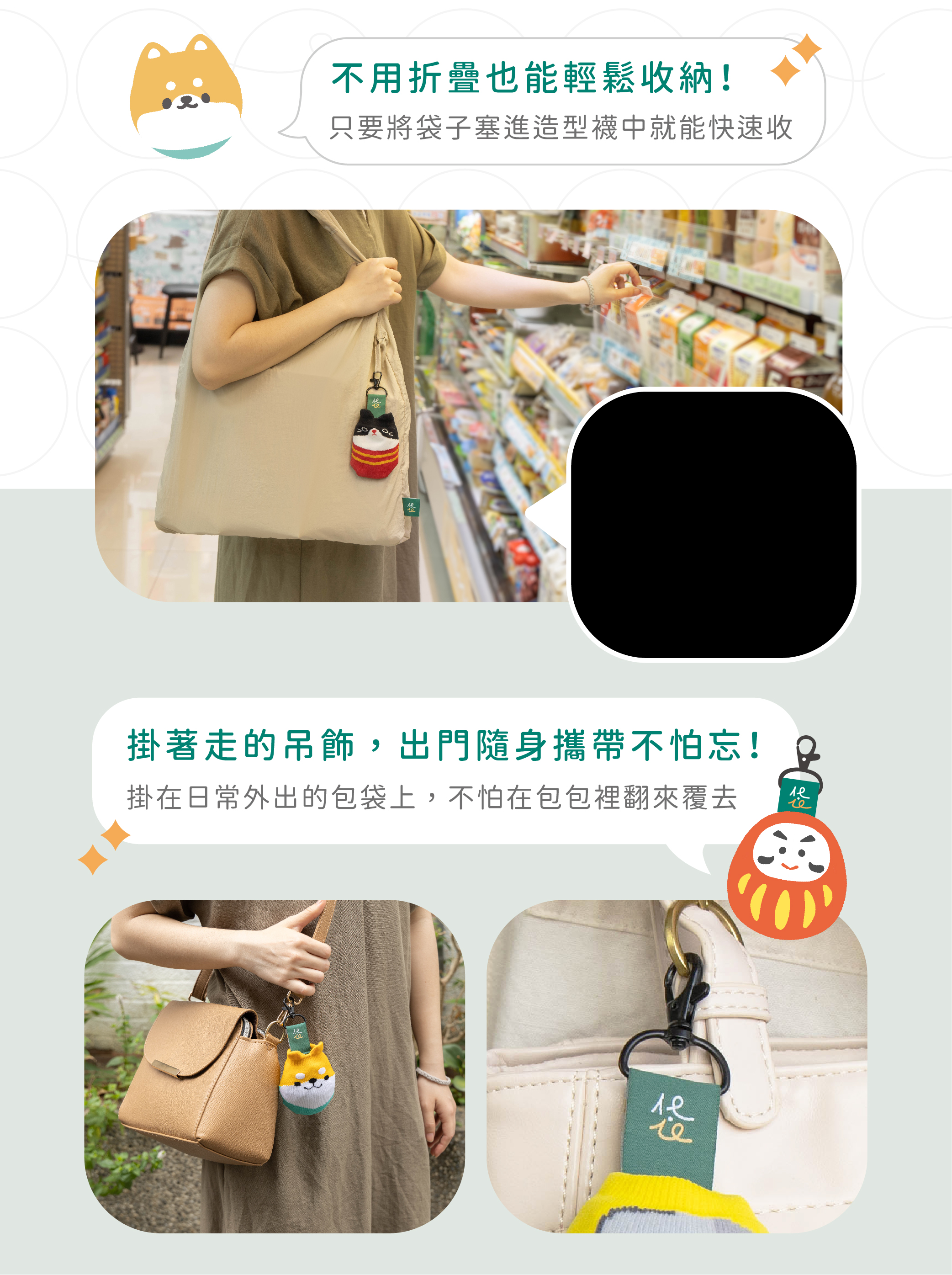 【圓滾滾的小吊飾,藏著大容量提袋】
