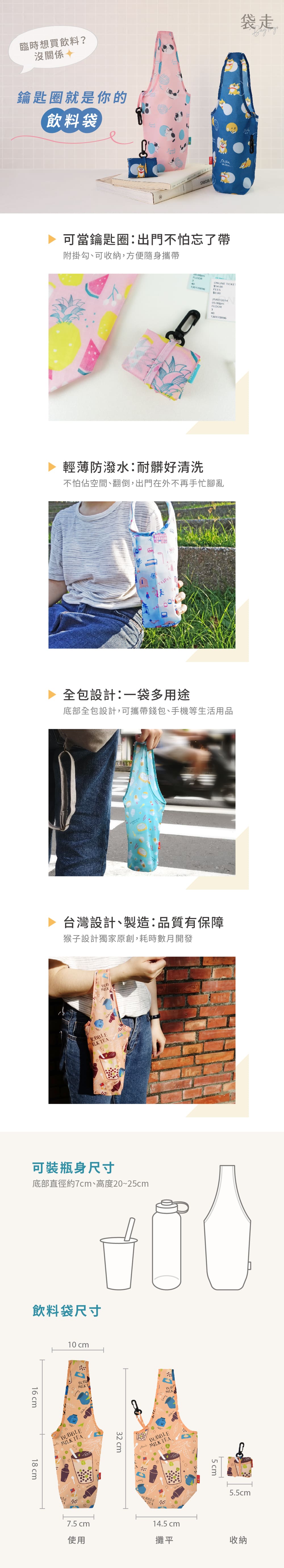 獨家設計!可以當鑰匙圈的環保飲料袋,輕巧防潑水、超實用大容量,買飲料再也不手忙腳亂。