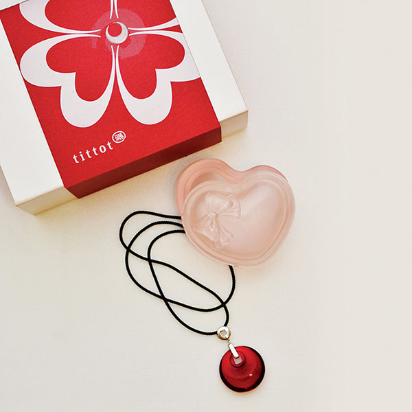 禮盒的貼心設計,傳達最動人的情意。結合琉園兩款作品:【圓暢】項鍊、【心花開】珠寶盒。項鍊的圓潤外型,如同愛情的甜蜜;專屬的紅色更是愛情限定色。珠寶盒可以藏起最甜蜜的驚喜。一打開,滿滿的情意就傾瀉而出。本作品採用費時費工之脫蠟鑄造技法,故每件作品的色澤都會略有差異。