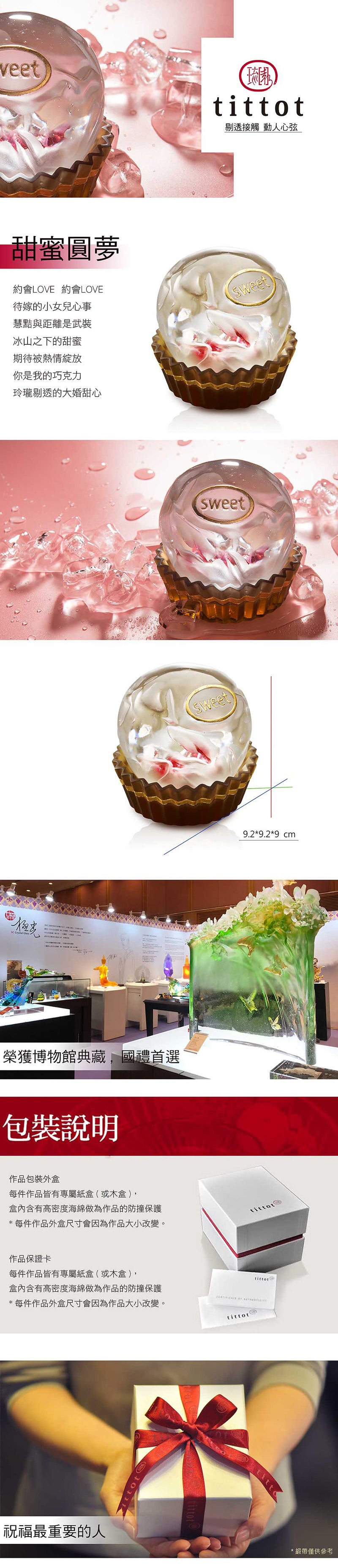 作品尺寸:9.2*9.2*9 cm (cm) 作品重量:1.15(kg) 作品顏色:紅茶透+金箔