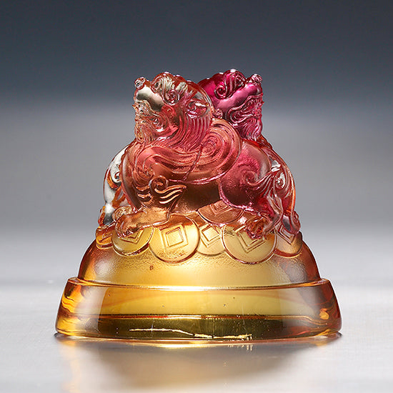與國立故宮博物院合作設計之名片座,在職場上展現獨特的生活品味。辟邪(貔貅)是上古相傳的瑞獸,具有開運招財、辟邪納福的功能。結合名片座「放置名片與人溝通、傳達名聲」的實際用途,點出貔貅祥瑞、傳達名聲的意象。本作品採用費時費工之脫蠟鑄造技法,故每件作品的色澤都會略有差異。