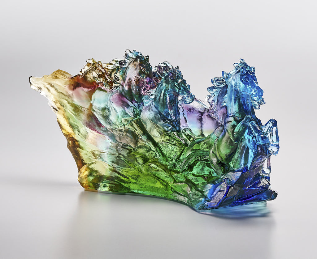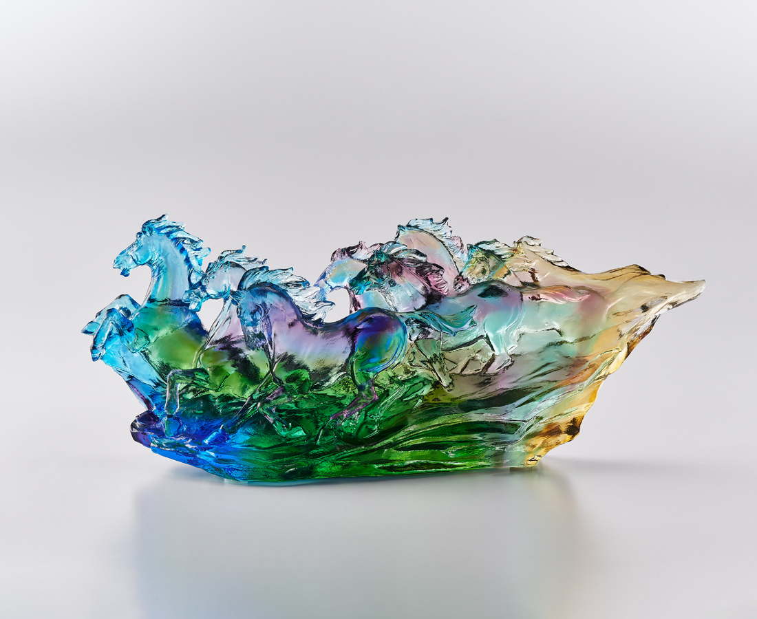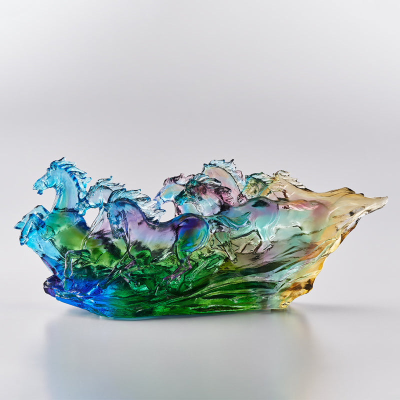 【開勢如城】 一夫荷戈 萬夫之助 一卒有職 百卒效力 莫問孰先後 壯士樂為用 九族百姓集千眾 駿馬奔騰極喧豗 群心一志 開勢如城 《團結共築城牆(一同奔馳的馬)》 馬,在中國生肖中排行第七,是整個中華文化與歷史中,非常受到喜愛的動物。馬的各種習性、性格與姿態,都象徵著不同的好寓意;而其中,馬兒群體生活、會彼此互相學習與保護的習性,也讓馬兒擁有忠誠一致、上下齊心的象徵,傳遞出「團結就能共築城牆」的共榮精神。 《The Rallying Horses》 The horse, seventh in the Chinese zodiac, has long been cherished in Chinese culture and history. Its nature, character, and posture carry many auspicious meanings. Among them, the horse’s instinct to live, learn, and protect one another as a group symbolizes loyalty, unity, and shared purpose. Together, they remind us that with unity, we can build walls of strength and achieve shared success. 創作起源 & 設計解析 • 為 2026 丙午馬年的生肖系列「馭極」作品之一。 • 馬兒以群居、會互相學習和彼此保護為天性,所以作品為表現出這種「忠誠、團結、上下齊心」的性格,以歷史大將軍——戚繼光為創作原型,汲取戚繼光特別會帶人帶心而連連勝戰的功績為其精神,作為對典藏者的人格讚頌。 • 底座以岩石紋理為基礎,也代表創業的「基石」。 • 作品共有八匹馬,是對成功的期許。(雖然因為作品很小,所以後面的馬在雕塑上比較虛化,不過每一匹馬的臉都是清楚的喔,有一匹要從背後看) ► 如此小件又精緻的「八駿」是這件作品的最大特色和優勢。 美感與工藝 • 小型作品要打造動態奔騰的八匹馬,很考驗原型師的美感底蘊。可以看到,從作品正面看,每一匹馬頭都是沒有重疊的。 禮贈或典藏目的整理 • 作品的「基石」造型和文案,都很適合作為開業禮贈;眾馬齊心奔騰且彷彿成為一道城牆的造型,也很適合作為給合作夥伴的禮贈。 • 因為作品名稱有「開勢」可同音為「開市」,所以和股市相關的禮贈也很適合。 • 作品其實很小件,所以非常適合團購,可作為如新人獎等禮贈。