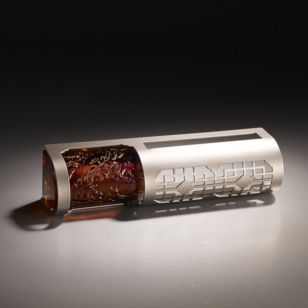 萬物靜觀皆自得 在方寸之間 有五湖四海的志氣 有千山萬水的心胸 馳騁天馬行空的創意 揮灑不拘一格的精彩 設計概念: 01設計師擷取文物「玩山賞水」的功能,變成辦公桌上的MEMO座,引申為即使處在辦公空間,仍能馳騁自我的想像,培養不拘一格的創意。 02金屬件上的鏤空,擷取了古代窗花的圖紋。透過窗戶可以看到外面的世界,既呼應可以透過文物想像遊覽山水間的功能,也藉此引申透過想像,我們可以不受到拘束,而有著天馬行空的思考與創意。 03作品來源為乾隆時代的創作,轉化成實用的辦公小品,不僅保留了作為擺飾賞玩的功用,也兼具實際的生活功能。