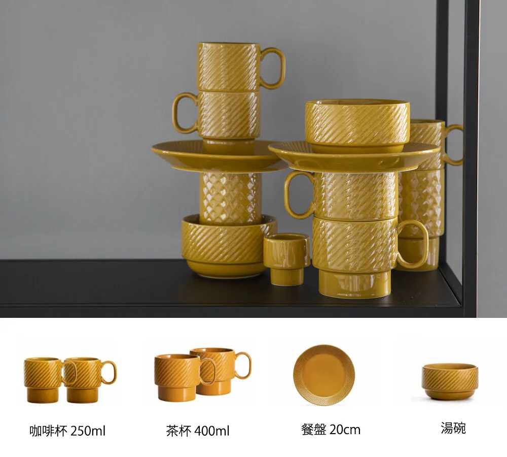 瑞典設計師 Margot Barolo 讓北歐70年代最受歡迎的圖騰重新回到餐桌上,並運用四種不同的漂亮的顏色搭配,咖啡杯可以疊加擺放,不論是選擇單一色或是混色搭配,都有各自的個性與美感,Coffee & More系列,與家人好友享受一頓美好的下午茶。