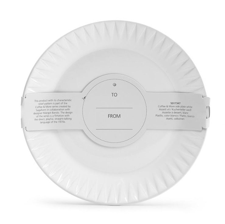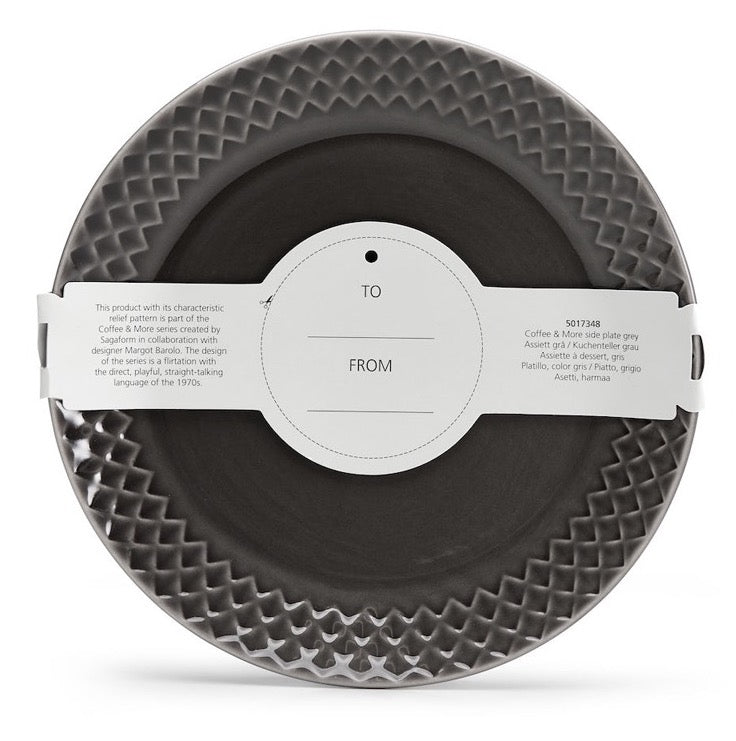 這款具有獨特浮雕圖案設計的餐食盤是Sagaform與設計師Margot Barolo合作Coffee&More系列的一部分。 Coffee&More的設計是反映70年代直接,有趣,直言不諱的態度。 該系列包含了不同的圖案及顏色,但卻能結合出一致的協調感,發揮出撞色的最佳效果。